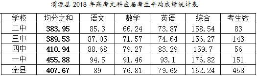 理科成绩的总体排序还是一中、四中、二中、三中,与应届生情况一致。 3.文科应届平均成绩
