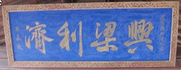匾额“兴梁利济”,是由林森所题。林森(1868年3月16日-1943年8月1日),福建林森县(今闽侯县)人,近代著名政治家。辛亥革命中,被举为民国开国参议院议长,此后又担任过大元帅府外交部部长,参议院院长兼宪法会议议长等职。1931年12月,接替因九一八事变而下野的蒋介石任国民政府主席。1941年12月,林森代表国民政府对日宣战。