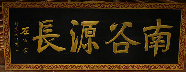 “南谷源长”是左宗棠七十一岁时所题,当时左宗棠任陕甘总督赴新疆督办军务,途经渭源,南谷在渭源县城以南,因此称为南谷,也是渭河发源地。
