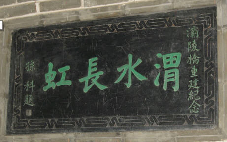 右边匾额是孙科所题“渭水长虹”,即形容灞陵桥如一道七彩长虹横跨渭河之上。因此灞陵桥还有一个很美好的名字“长虹卧波”。孙科是孙中山长子,当时任国民政府行政院院长。