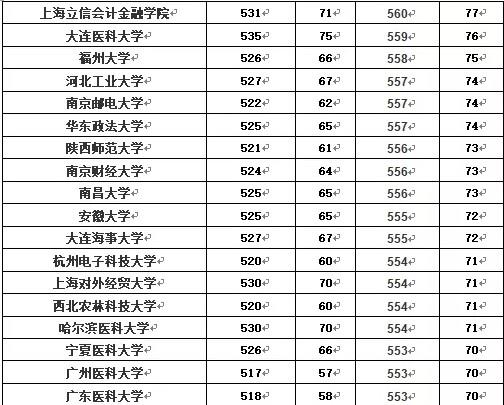中段区间的可拟填报西北工业大学—广州医科大学之间的95所“985工程”院校、“211工程”院校及办学条件、地域、专业前沿的其它一本院校(见表三),