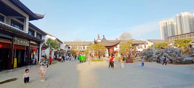 去年的此时,正在建设中的古镇工地都被围栏堵着。没想到,一年之后竟发生了天翻地覆的变化!