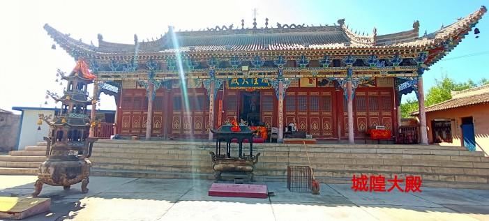 院内正中是城隍大殿,渭源城隍姓殊,名展良,是城关上磨人,据说他天资聪明,诚实忠勇,曾造福一方,所以被封为本地城隍。右边小的塑像是害爷,也就是古代衙门的般头。城隍在道教中的意思是指城市的保护神,可见城隍庙在当地的地位和影响。
