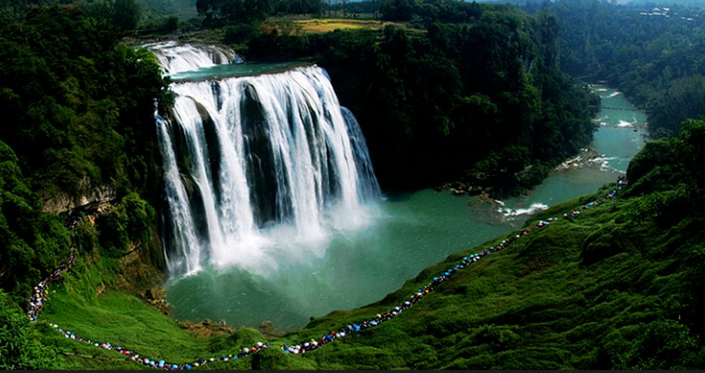 黄果树瀑布,即黄果树大瀑布。古称白水河瀑布,亦名“黄葛墅”瀑布或“黄桷树”瀑布,因本地广泛分布着“黄葛榕”而得名。位于中国贵州省安顺市镇宁布依族苗族自治县,为黄果树瀑布群中规模最大的一级瀑布,是世界著名大瀑布之一。以水势浩大著称。瀑布高度为77.8米,其中主瀑高67米;瀑布宽101米,其中主瀑顶宽83.3米。 黄果树瀑布属喀斯特地貌中的侵蚀裂典型瀑布。 黄果树大瀑布地处贵州西部低洼地带,海拔较低,终年无霜,年平均气温为14℃左右;冬无严寒,夏无酷暑,是避寒避暑胜地。1月最冷,平均气温在4.3℃,但最低气温很少会跌至零下;7月最热,平均气温在22℃,基本不会有高温天。 12. 中国(世界)平均海拔最高的山脉——喜马拉雅山脉