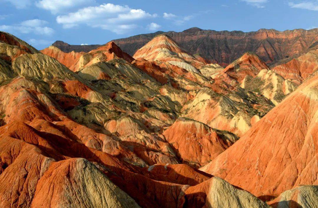 七是丝路霞光观景台。这里层理交错、色彩斑斓,连绵的山峰呈现出红、黄、橙、绿、褐、白、灰等多种色彩,宛如艳丽的彩带随风飘动。每当朝阳夕落,天边绚烂的晚霞给群山披上五彩霓裳,呈现出“一轮红日天边挂,满眼霞光照碧峰”的盛景。这里是景区内最佳拍摄日落的地方,故以丝路霞光命名。