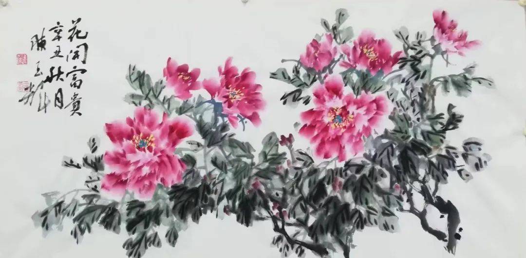 岁月不居,天道酬勤。身处上海这座国际大都市,博大、深厚、创新的中华文化给陈玉辉创作以丰富的滋养。一有机会他就去参观学习写生,认真体悟,广采博览,深入钻研。出于对祖国传统艺术的深切热爱,持之以恒,年如一日,遍临诸家书体帖,尤爱唐楷汉隶、“二王”、对米芾、王铎尤勤,以狂草为精,其国画师法徐渭、吴昌硕、八大山人,尤爱写梅和牡丹。作品潇洒飘逸、浑然天成、张驰有度,笔墨痕间展通篇气势,飞白间行云流水,篇幅里如凤舞龙腾。其行草,豪放健雄,洒脱多姿,风骨奇俏,刚健浑润,有军人的刚强筋骨,又藏文人的隽秀含蓄。细细研读,幅幅精妙,既充满了激情与生机,又极具感染力,给人以身心愉悦的艺术享受。