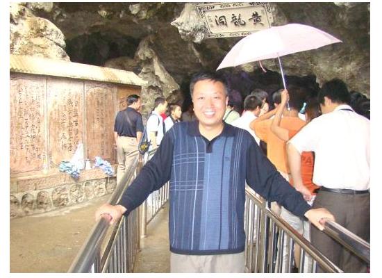 2007年7月26日,上午游黄龙洞,有石钟乳、师笋、定海神针等,甚为惊叹。上图是陈具才在黄龙洞口