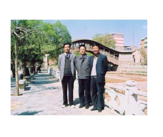 ↑2004年暑假期间,西北师大党委书记刘基(中)来渭源考察。上图是刘书记与时任渭源一、二中校长的金雁东、陈具才在一起。