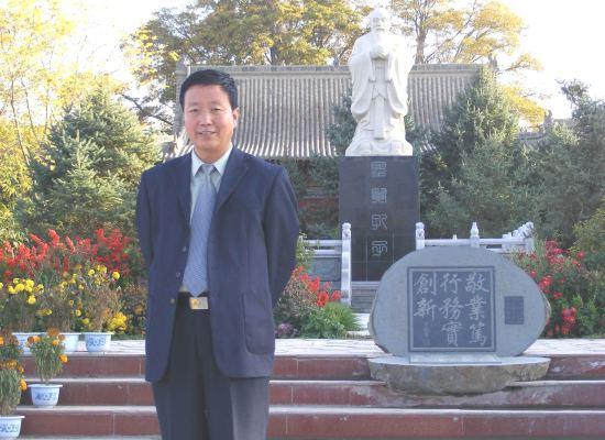 上图是陈具才于2008.10.22下午在张掖二中校园内的孔圣雕像前。