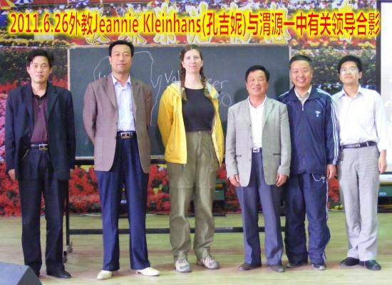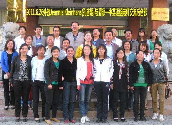 2011年6月26-27日,在原我校教师、现任教于甘肃中医学院的王世杰老师的积极努力下,我校邀请了甘肃中医学院外聘教授、美国学者孔吉妮(Jeannie Kleinhans)到访我校,与我校英语教师及在校的高一高二级全体学生进行了五场交流,其中英语教师一场,高二级高一级学生各两场。她的到来,对进一步加强我校英语教学,提高师生的英语口语和学生学习英语的兴趣必将产生积极推进作用。