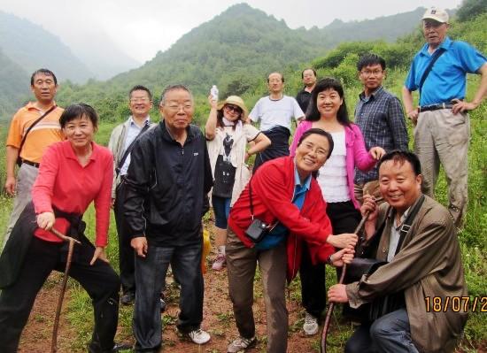 上图是7月18日陈具才陪全体专家游玩渭源莲峰山附近的的松涛坡,深入人迹罕至的深山老林,在无路可走、阴雨连绵的情况下徒步穿行五个小时,终于走出老林后,大家裹着满身泥水,但满怀胜利和喜悦的心情拍下的合影。图中人左起:马利军(政治,专家组领队,唐徕回中副校长)、曹敏(数学,女)、盛长青(化学)、段江淮(数学)、张炜(生物,女)、张兰国(语文,后)、周晓毅(数学,女,前)、李进(地理,后)、李丽霞(英语,女)、刘仕平(物理)、陈具才、安国栋(历史)。拍照者:导游小姜。