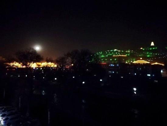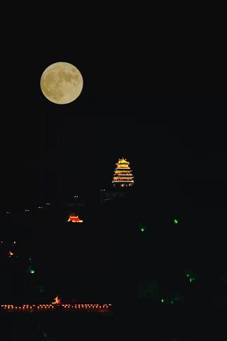 四、下图是2018.3.2元宵节之夜在自家阳台拍的老君山夜景(圆月刚刚升起)。
