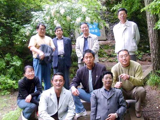 2007年7月5日,渭源一中高三数学备课组一行9人借夏日阴雨天的凉爽空气,一同即兴游玩了渭源著名旅游景点——莲峰山。下图中后排左起:白进忠、牛万喜、陈具才、何伟军,中排左起:杨玉淑、李建军、杨全相,前排左起:杨廷俊、何仁权。