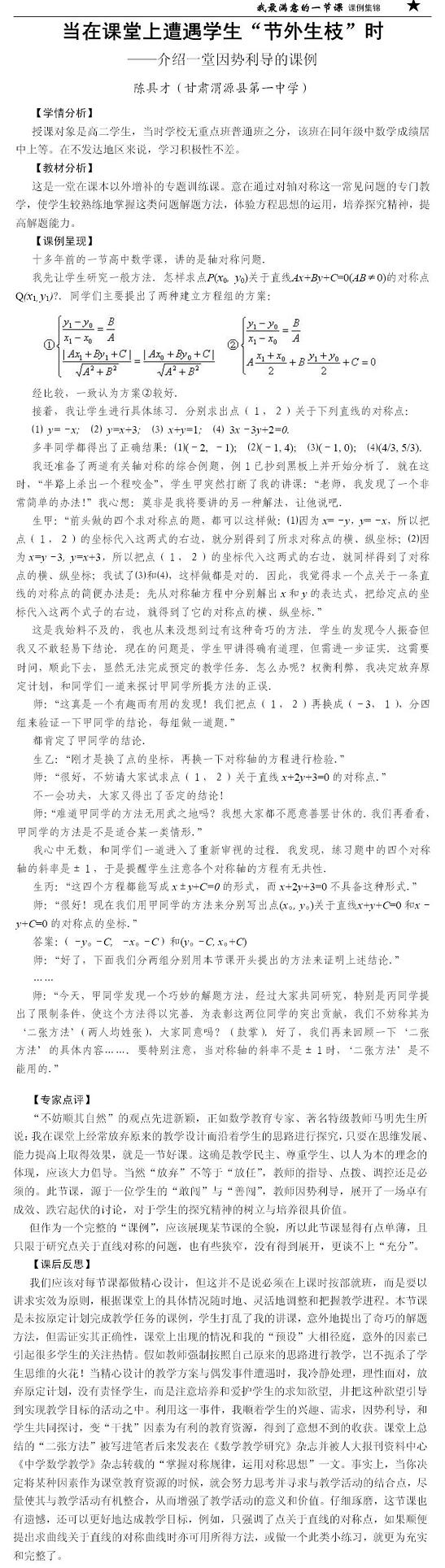 当在课堂上遭遇学生“节外生枝”时作者:陈具才 来源:本站原创 说明:本文发表于2010.5出版的《我最满意的一节课 课例集锦》(陕西师大出版社)