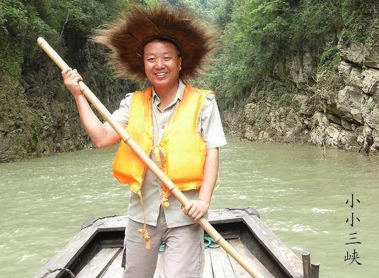 上图是陈具才在小小三峡小木船上游玩