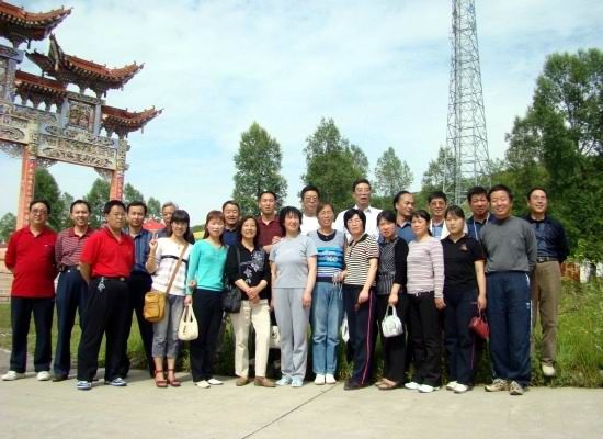 2008.7.20下午渭源一中60人旅行团队游览参观了拉卜楞寺。这是数学小组九人在一起,图中右起:牛立新、陈具才、郭亚琴、何仁权、倪彩兰、刘彩琴、何伟军、曹平原。