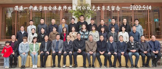 上图是2022年5月14日,渭源一中数学教研组全体教师欢送老组长何仁权先生荣退的合影。